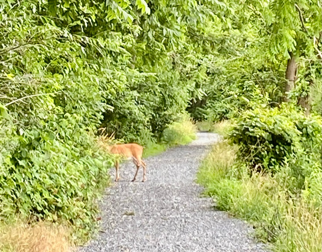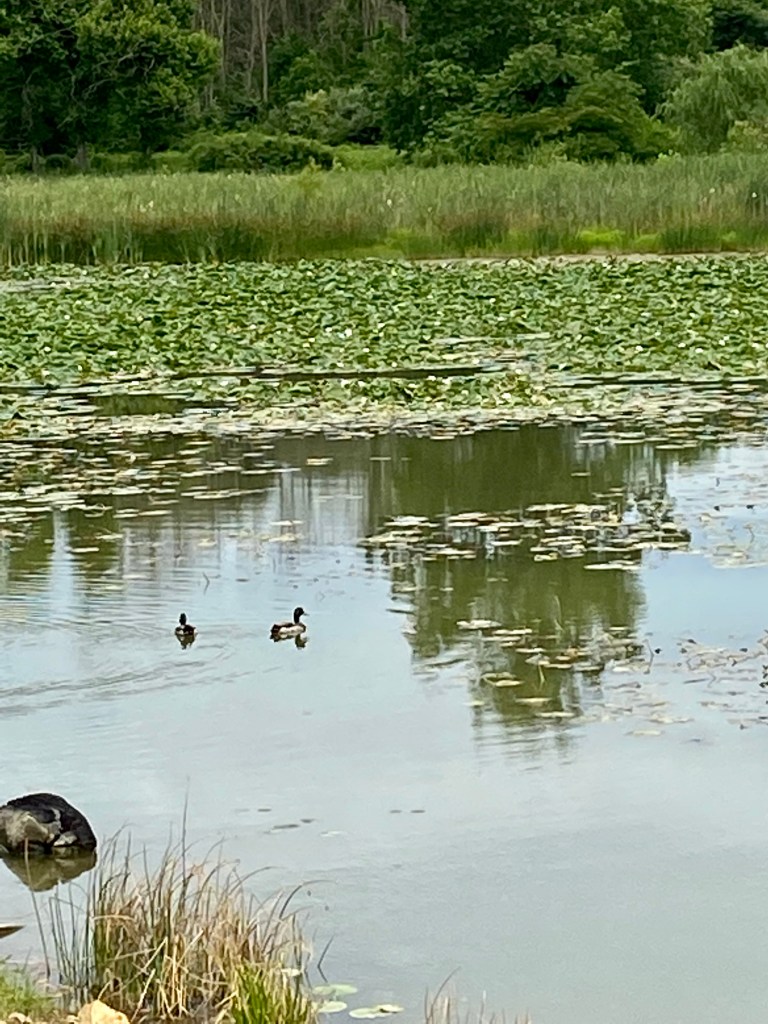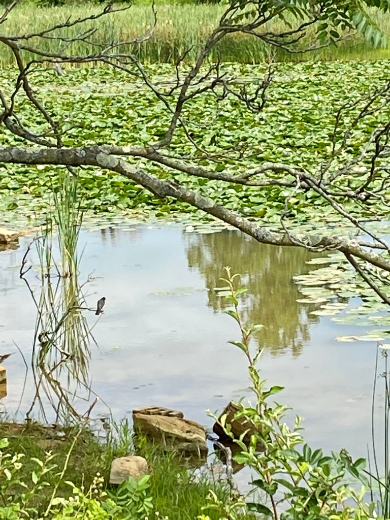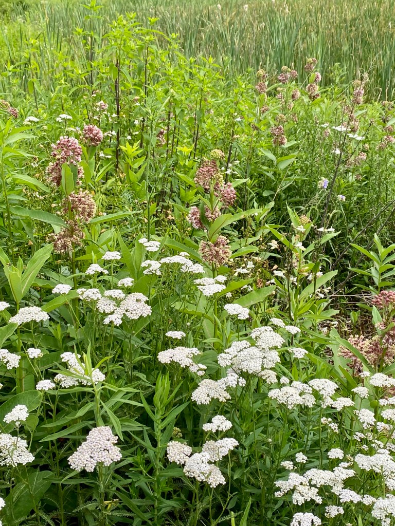 Wildflowers abound, along with milkweed to encourage a Monarch butterfly population along the pollinator trail. Placards along the way outline the various points of interest and natural wonders. A few lucky stiffs have homes which abut one side of the lake and lighthearted banter was faintly heard from duffers playing on a nearby golf course.
